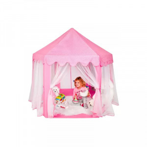 Játéksátor gyerekeknek bel- és kültérre, hatszögletű, kastély témával, összecsukható, 135x135x140 cm, rózsaszín